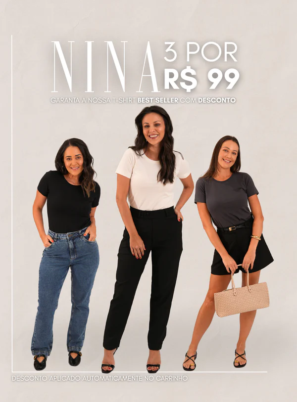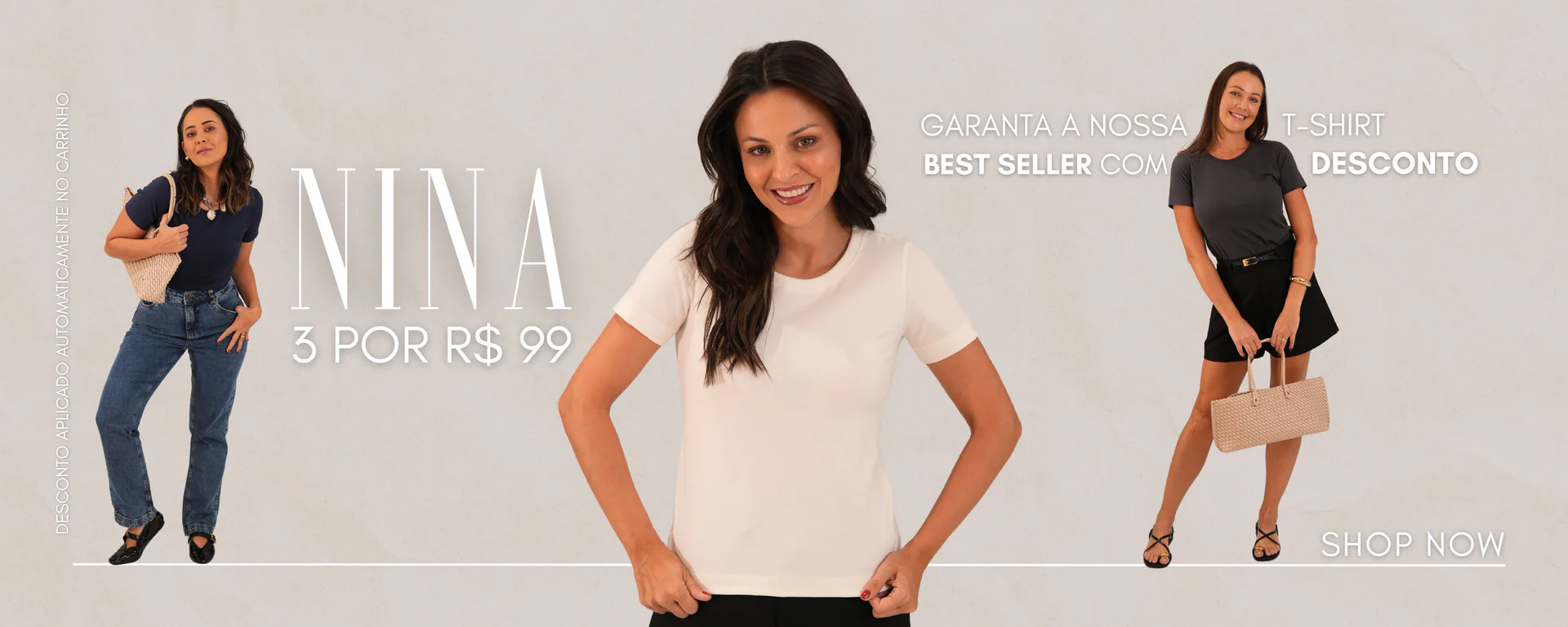 [COMPRE 1 LEVE 3] T-shirt Feminina Algodão Nina + Pulseira de brinde